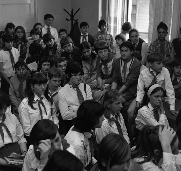 Úttörőcsapat zászlóavatása a Bányai Júlia Általános Iskolában 1971-ben