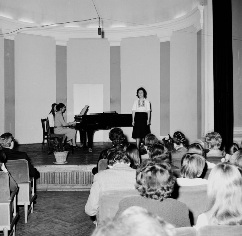Kodály Zoltán születésének 100. évfordulójára rendezett ünnepség a Zeneművészeti Szakközépiskola dísztermében (1982. december) |